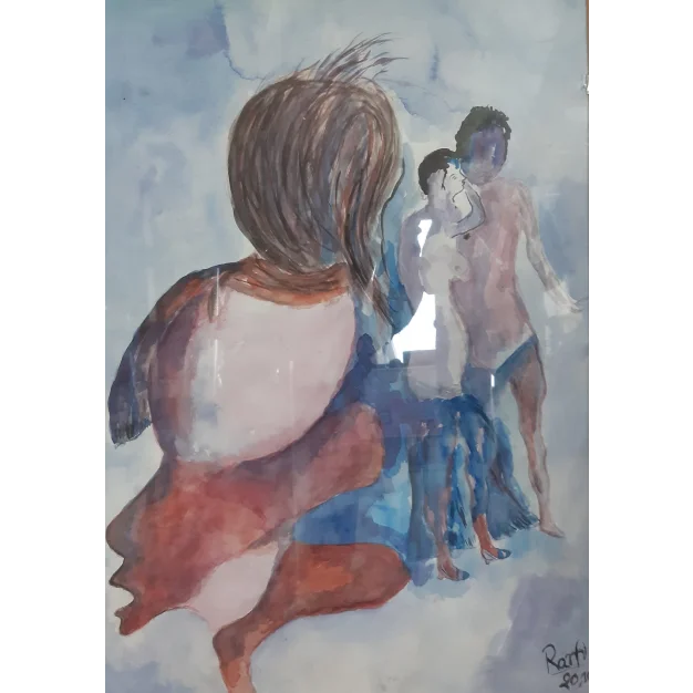 ακουαρέλα από τον Ραμ (Νεπάλ) σε λίστα πίσω από γυαλί